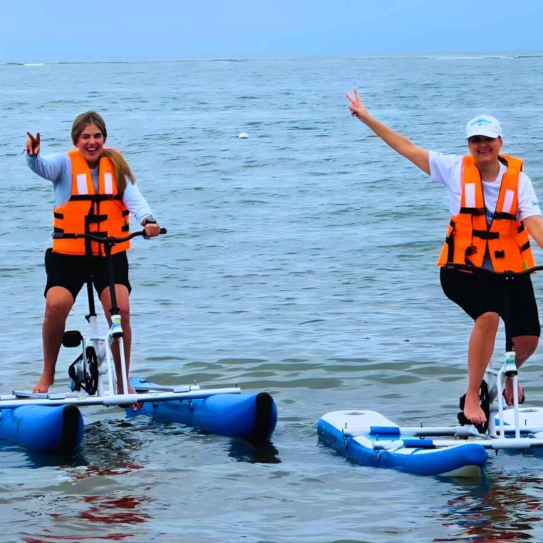 • Bicicletas Náuticas y Bote a Remo: Una experiencia tranquila y divertida. Capacidad para 2 personas con una duración de 30 minutos.