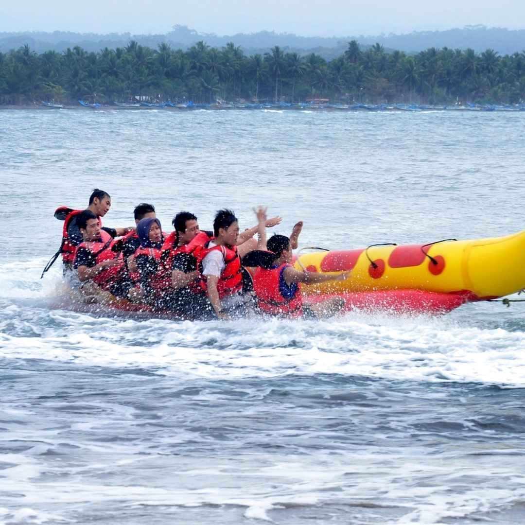• Gusanito (Banana Boat): ¡La dosis de adrenalina que necesitas! El plan favorito de los grupos. Incluye un recorrido a velocidad y la clásica caída al agua para refrescar la experiencia.
